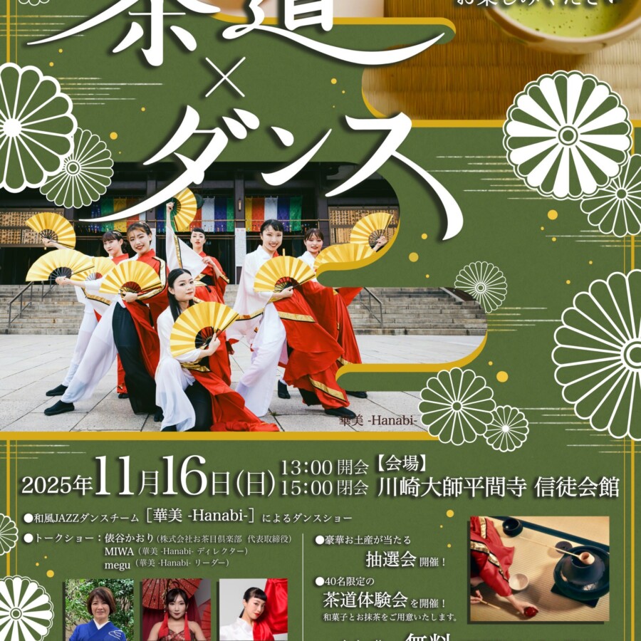 川崎に根づいている茶道とダンスという異⽂化のコラボイベントが川崎大師平間寺で実現。当日は、国内外で活躍する和風JAZZダンスチー...