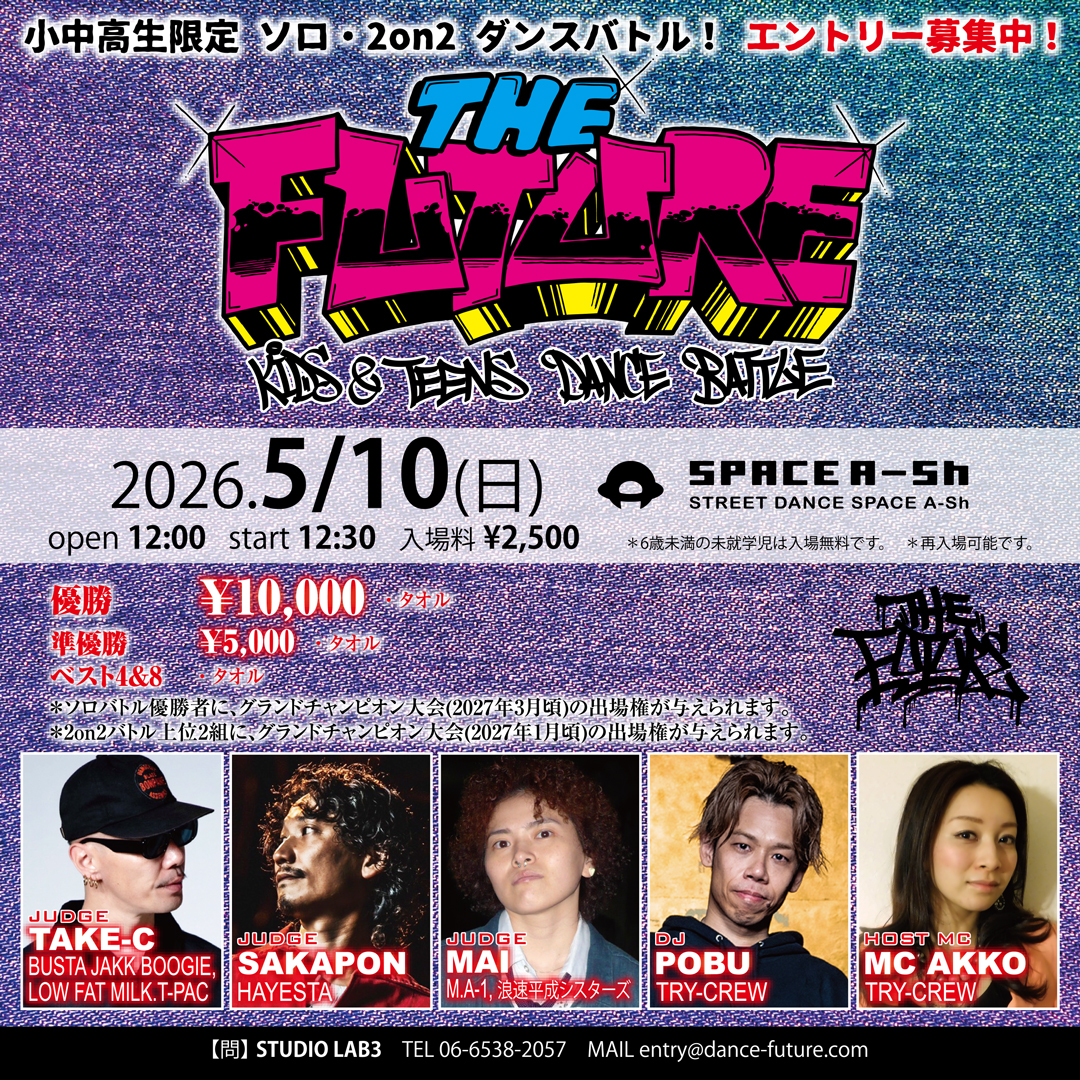 • 【参加者募集】小中高生限定ダンスバトル!『THE FUTURE』2026年5月10日(日)大阪SPACE A-Shで開催!